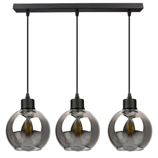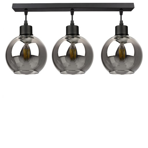 Lampa wisząca żyrandol wyposażona w Trzy szklane klosze w kształcie kuli w kolorze Grafitowo-Transparentnym LX-1141