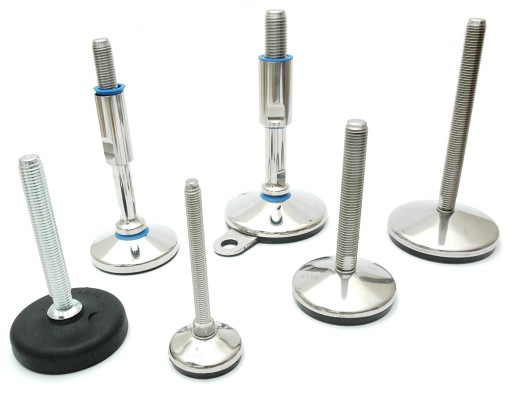 - Stopki z poliamidową podstawą o średnicach 30,40,50,83,103 i 123 mm z trzpieniem o różnych długościach i średnicach nierdzewnych lub ocynkowanych