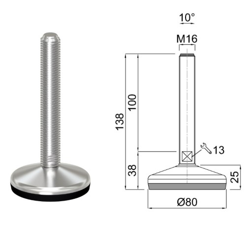 Stopa regulowana, wahliwa z podstawą fi 80 mm