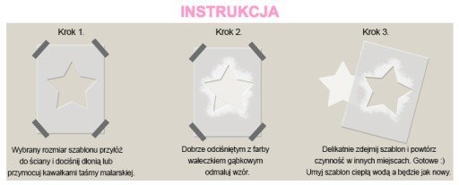 - bardzo łatwe w użyciu - przyłóż szablon do ściany i odmaluj wzór - GOTOWE! W paczce znajdą Państwo instrukcję obsługi