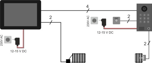 - Połączenie 4 żyły +2 żyły zasilanie zamka i stacji zewnętrznej +2 żyły sterowanie bramą automatyczną