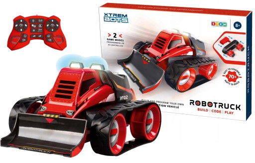 Robotruck posiada 2 silniki elektryczne oraz 2 tryby zabawy – zdalne sterowanie lub programowanie do 50 różnych akcji.
