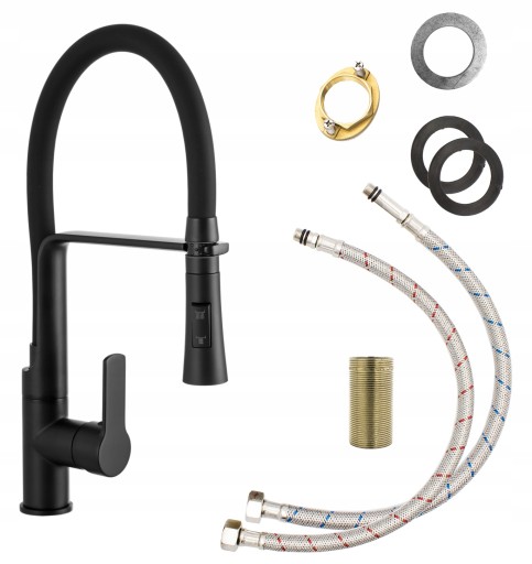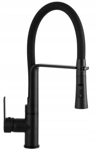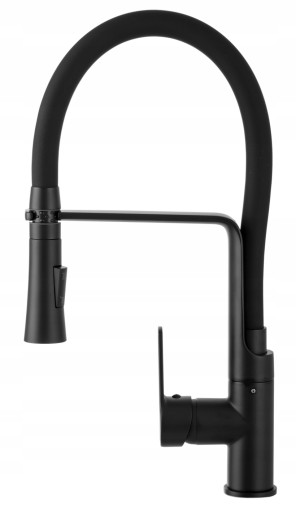 BATERIA KUCHENNA Z WYCIĄGANĄ WYLEWKĄ CZARNA KRAN DWUFUNKCYJNY VEGAS