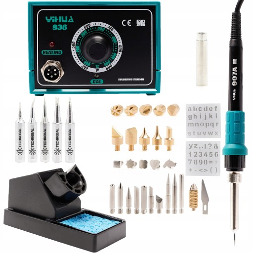 ✅ Pirograf / Grotowa stacja lutownicza Yihua 936 + zestaw akcesoriów do wypalania drewna oraz do lutowania cyną