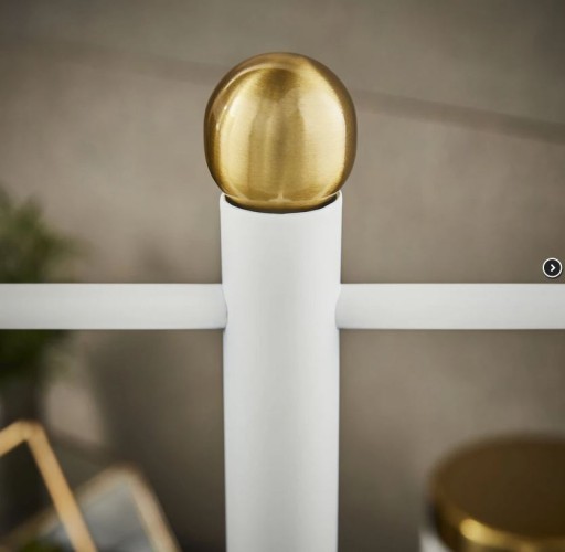 z matowym białym wykończeniem z diamentowymi detalami i złotymi akcentami.