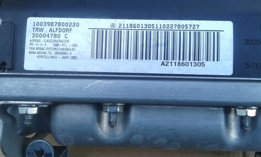Deska rozdzielcza / konsola + poduszka powietrzna pasasżera Mercedes W211 E-Klasa - numer poduszki A2118601305 / numer deski A2116800687 - wersja europejska (stan jak na foto - części w stanie bardzo dobrym). Posiadam również inne części do tego modelu dostępne na moich aukcjach.