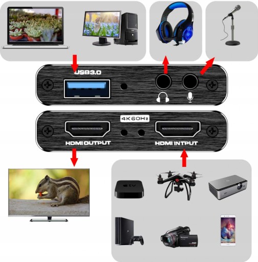 - 1x USB 3.0 Grabber Nagrywarka Obrazu PC HDMI 4K OBS