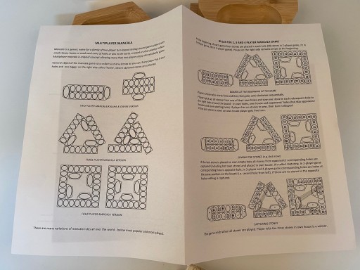 Zasady gier mankala różnią się na świecie - zestaw zawiera najbardziej popularne reguły (po polsku i po angielsku).