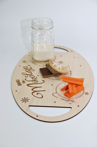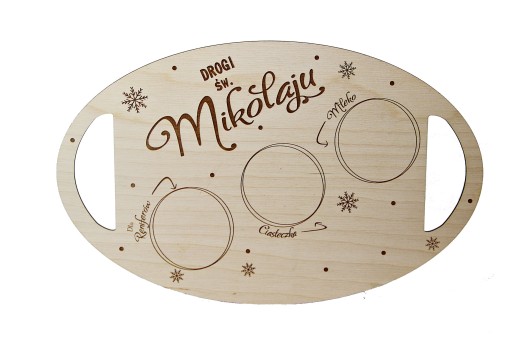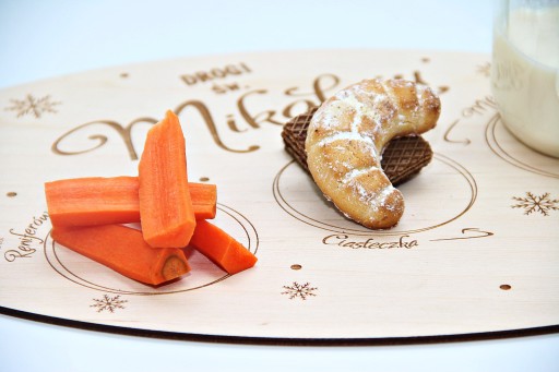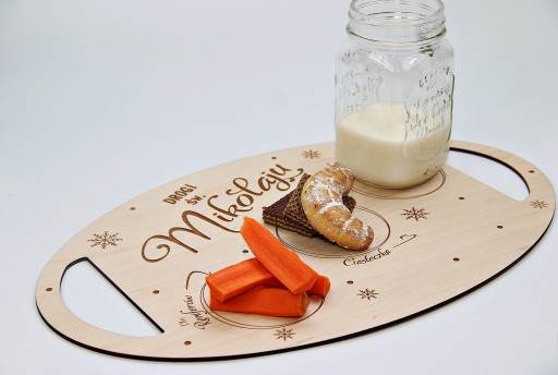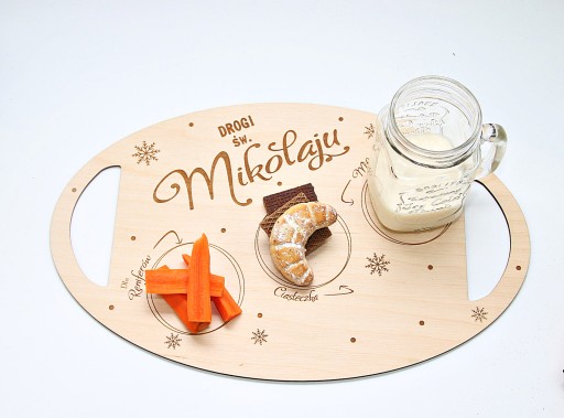 Nasza propozycja to drewniana tacka dla Mikołaja, na której dziecko może przygotować poczęstunek w podziękowaniu za prezenty, oraz aby Mikołaj miał siłę do dalszej podróży.