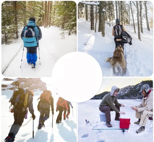 - Można je również przechowywać w dołączonej torbie i można je łatwo zawiesić na plecaku z karabińczykiem. Dodatkowo, nawet stojąc, możesz założyć je na buty w kilka sekund.