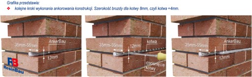 - Zapotrzebowanie na kotwy oraz zaprawę można wyliczyć: https://resinbau.pl/zuzycie-zaprawy-do-kotew/?