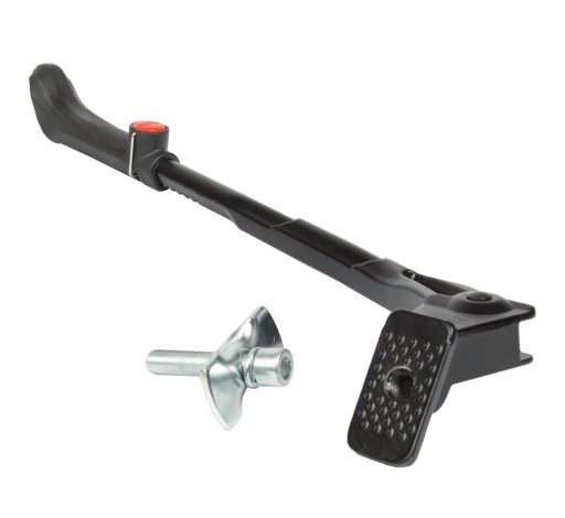 - Regulowana stopka aluminiowa mocowana centralnie za mufą suportu, do rowerów na kołach 24-29" (zakres długości 32-38cm). Długość podnóżki regulowana za pomocą przycisku. Stabilne oparcie roweru gwarantuje wykonana z tworzywa, duża, bieżnikowana końcówka stopki.