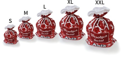 - Personalizacja - na worku możemy umieścić imię obdarowanej osoby lub inny napis