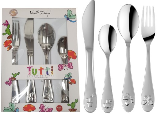 VIALLI 4 МЕТАЛЛИЧЕСКИЕ СТОЛОВЫЕ ПРИБОРЫ ДЛЯ ДЕТЕЙ TUTTI