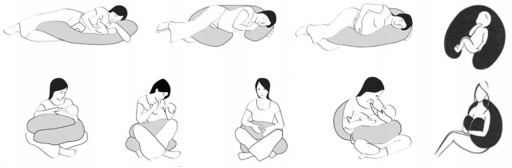 Poduszka ciążowa jest wielofunkcyjna i komfortowa długość ok. 115 cm. Dzięki temu u przyszłej mamy zapobiegnie uciążliwym dolegliwościom bólowym oraz obrzękom kończyn. Umożliwia wygodne spanie na boku co jest szczególnie korzystne dla kobiet w trzecim trymestrze ciąży, kiedy rosnący brzuszek zaczyna mocno przeszkadzać w spaniu. Sprawdza się również przy schorzeniach karku i kręgosłupa.