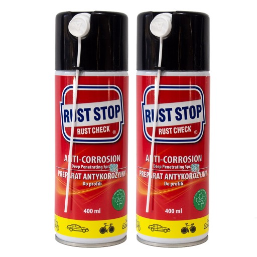 W skład zestawu wchodzi: 2x RUST STOP RUST CHECK ANTI-CORROSION - preparat antykorozyjny do profili 400ml