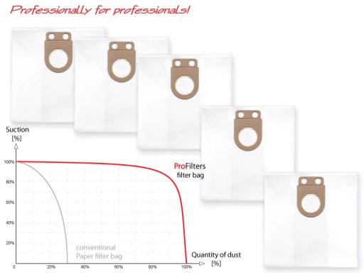 Worki materiałowe 3 warstwowe marki profilters, stanowią doskonałą alternatywę dla papierowych. Przede wszystkim, są dużo bardziej wytrzymałe, dzięki czemu możesz usuwać zabrudzenia nie martwiąc się, że wkład pęknie, a brud rozsypie wewnątrz urządzenia. Co więcej, w odróżnieniu od papierowych dużo skuteczniej zatrzymują pył, kurz oraz alergeny i zapobiegają ich przedostawaniu się ponownie do otoczenia. Jak widać zalet jest wiele, dlatego jeśli zależy Ci na sprawdzonych i dobrych jakościowo wkładach do odkurzaczy profesjonalnych, nie zwlekaj i kup dziś.