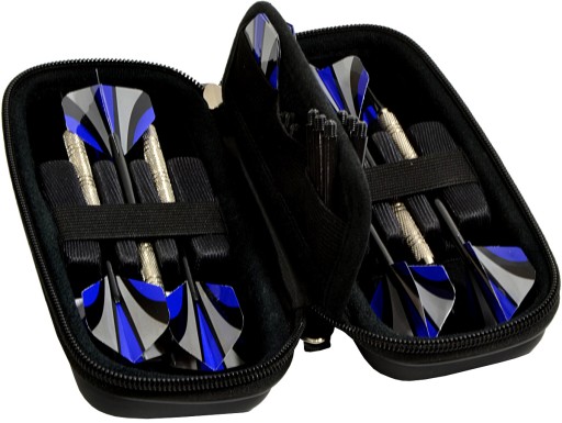W zestawie znajduje się kompaktowe etui z wyodrębnionymi miejscami na poszczególne akcesoria, co pozwala na przechowywanie w pełni zmontowanych rzutek. Dodatkowo zawiera 6 centralnych kieszonek na drobne akcesoria.