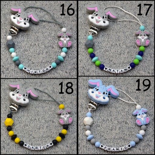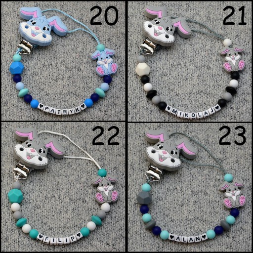 Na innej naszej aukcji, można również dokupić silikonowy gryzak w różnych wzorach i kolorach.