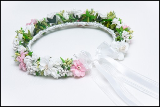 Przedmiotem oferty jest piękny wianek komunijny wykonany ręcznie z kwiatów piankowych oraz dodatków florystycznych.