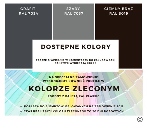 Bardzo proszę o wybór i napisanie w rubryce "komentarz do sprzedającego" odpowiedniego dla Państwa koloru