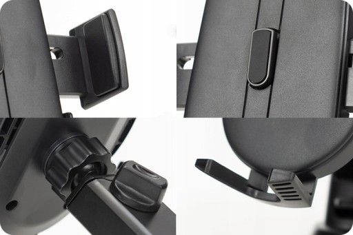 Na panelu uchwytu znajdują się przyciski, które pod wpływem nacisku zwalniają ramiona trzymające telefon. Aby ponownie otworzyć uchwyt wystarczy (również jedną ręką) ścisnąć listwę otwierającą.