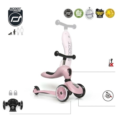 SCOOTANDRIDE Highwaykick 1 2w1 Jeździk i hulajnoga dla dzieci 1-5 lat Rose ⭐⭐⭐⭐⭐