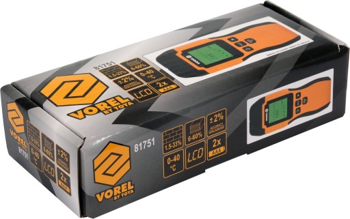 Wilgotnościomierz oporowy z dwiema ostrymi elektrodami, przeznaczony do pomiaru wilgotności wielu rodzajów drewna, materiałów drewnopochodnych oraz wielu materiałów budowlanych.