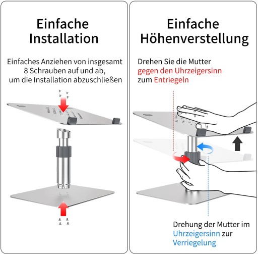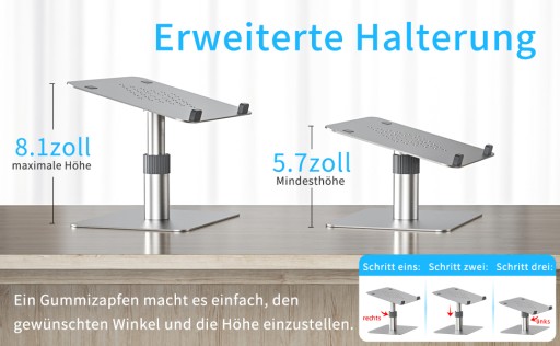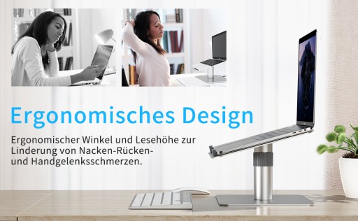 Ergonomiczna konstrukcja: uchwyt na laptopa Newaner jest pochylony pod kątem 15° i można go dowolnie regulować na wysokość w razie potrzeby. Dla tych, którzy muszą pracować z laptopem przed biurkiem kilka godzin dziennie, zmniejsza zmęczenie szyi i kręgosłupa oraz łagodzi ból pleców i zmęczone oczy poprzez poprawę pozycji siedzącej i wysokości wzroku.