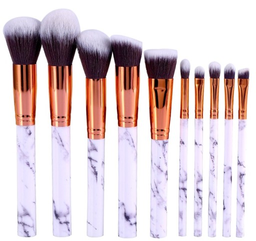- pędzel nr 10: ścięty po skosie do precyzyjnej aplikacji podkładu, korektora, różu, rozświetlacza, bronzera