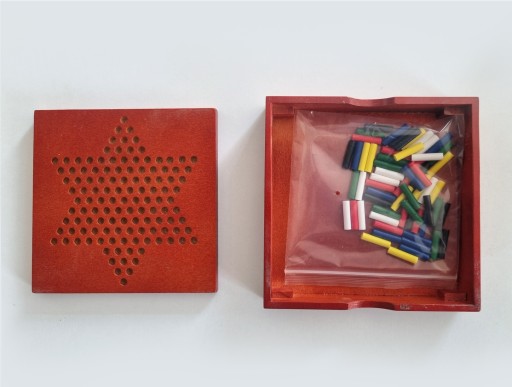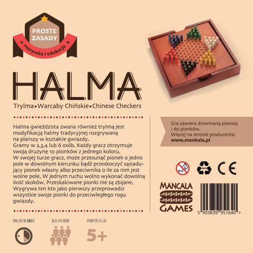 Gra zawiera drewnianą planszę i 60 drewnianych pionów