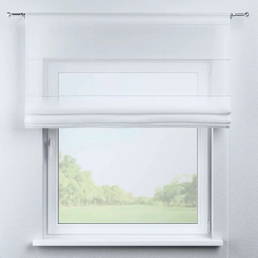 Półprzezroczysta roleta rzymska woalowa na kanale do zawieszenia na karnisz rurowy.
