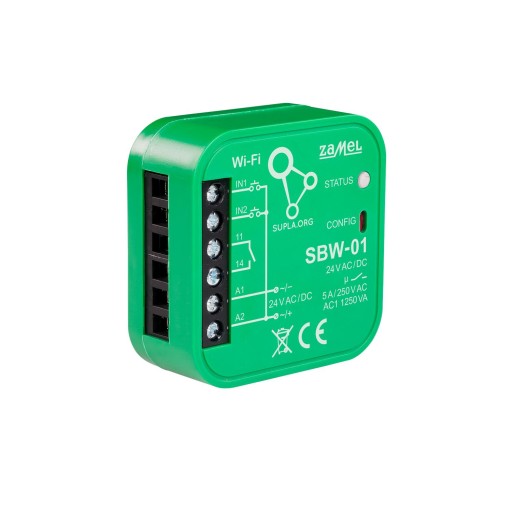 1 sztuka sterownika bramowego SBW-01, który pozwala na integrację z dowolnym napędem bramowym i umożliwia zdalną kontrolę bramy poprzez aplikację mobilną Supla. Urządzenie przystosowane jest do montażu bezpośrednio w napędzie. Dzięki zasilaniu 24V jest w pełni bezpieczne. Podłączając sygnały z wyłączników krańcowych pod wejścia sterownika otrzymujemy informację o otwarciu i zamknięciu bramy.