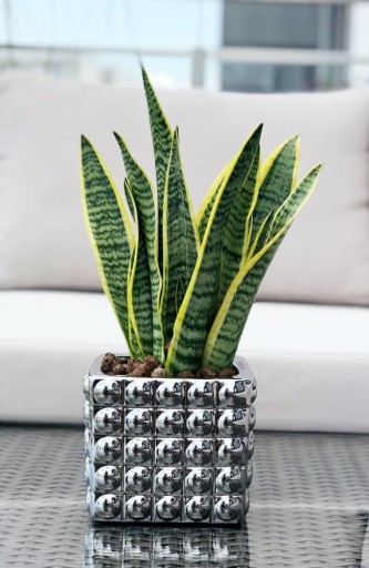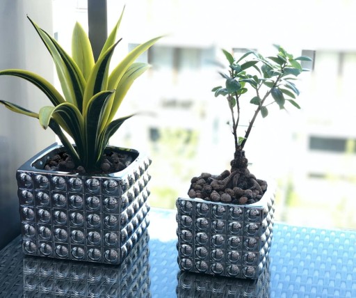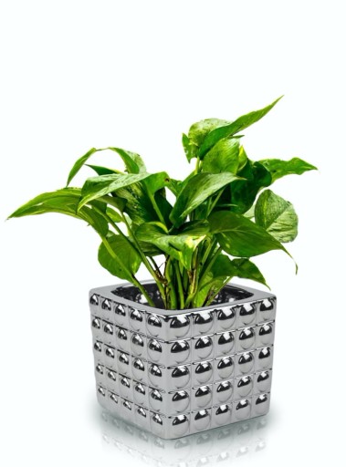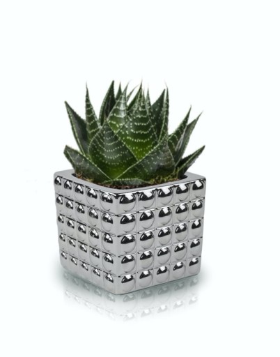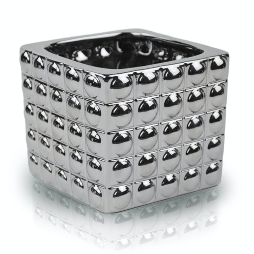 Цветочный горшок с керамической крышкой, квадратный, серебро, 3D, H14
