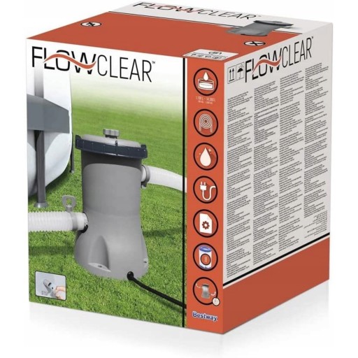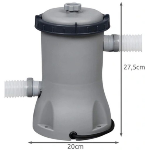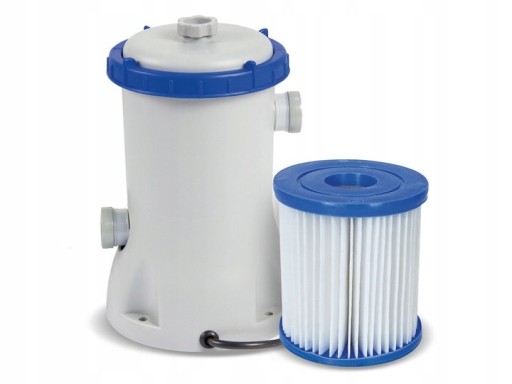 Elektryczna pompa filtrująca toń wody z wszelakich zanieczyszczeń o wydajności 2 006 l/h. W zestawie dołączone są węże oraz złączki niezbędne do podłączenia pompy. W zestawie znajduje się jeden filtr kartuszowy typu II, o indeksie 58094. Filtry należy co 2-3 dni płukać pod bieżącą wodą, oraz wymieniać co 2 tygodnie.