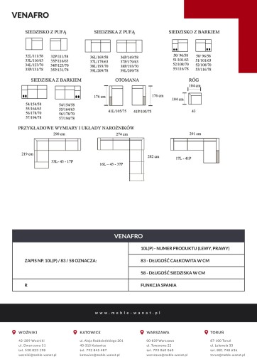 Z tego modelu istnieje możliwość wykonania sofy 3-osobowej, 2-osobowej, fotela oraz narożników w różnych wymiarach i kolorach.