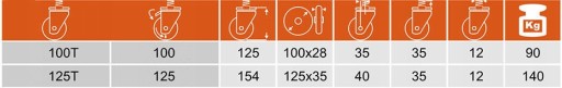 KOŁO OBROTOWE POLIAMID 100 mm GWINT 12mm HAMULEC