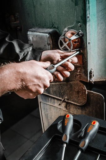 Zestaw wkrętaków i końcówek wkrętakowych NEO (nr ref. 04-211) zawiera 58 wysokiej jakości elementów. Grot każdego wkrętaka wykonany z bardzo wytrzymałej stali S2, zapewniającej długą żywotność. Wkrętaki posiadają magnetyczną końcówkę. Trójgraniasty kształt uchwytu z wyprofilowanym oparciem dla kciuka zmniejsza obciążenie dłoni podczas pracy i ułatwia uzyskanie optymalnego momentu obrotowego. Uchwyt dwumateriałowy zapobiega ślizganiu się w dłoni, odporny jest na działanie chemikaliów, olejów i smarów. Jakość narzędzia potwierdzona 25-letnią gwarancją producenta. To wszystko, razem z 10 najwyżzsej jakości wkrętakami precyzyjnymi oraz 40 bitami o różnych kształtach i rozmiarach, zamknięte w poręcznej walizce, ułatwiającej transport i przechowywanie. Marka NEO spełnia oczekiwania profesjonalistów.