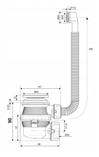 Wysokość: 10cm, 3 razy mnniejszy od standardowego syfonu, dzięki jego niewielkim rozmiarom uzyskujemy pod umywalką więcej wolnego miejsca.