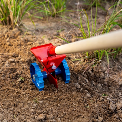 - W razie potrzeby do siewnika można przymocować drewniany trzon, który usprawnia pracę i umożliwia wykonywanie obowiązków w ogródku, na trawniku lub w polu w pozycji wyprostowanej.