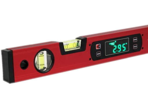 Poziomnica elektroniczna o długości 400 mm, korpus aluminiowy, anodyzowany.