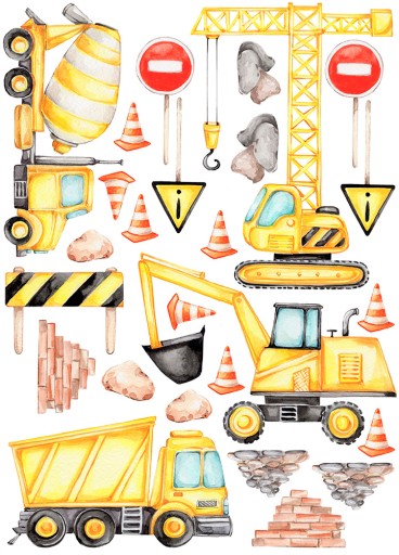 Наклейка на стену СТРОИТЕЛЬНЫЕ МАШИНЫ, строительство экскаваторов