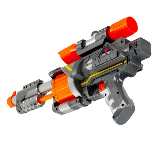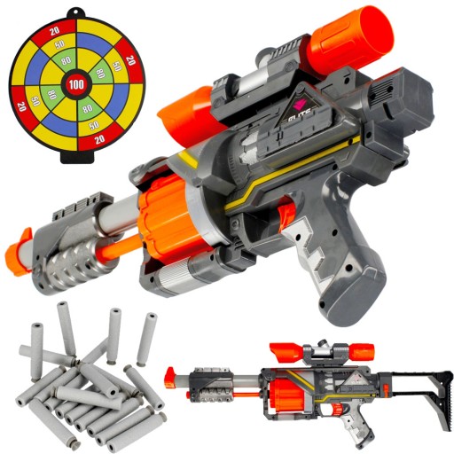 Pistolet lekki i wygodny w trzymaniu, miękkie i nie szkodliwe pociski piankowe, strzałki należy umieścić w magazynku a po naciśnięciu spustu pocisk wystrzeliwuje z pistoletu, tarcza łatwa do montażu oraz postawienia.