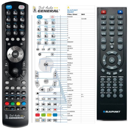 Pilot zdalnego sterowania jest dostępny na markę oznaczoną General DVD/AUDIO (widoczną po lewej stronie!).