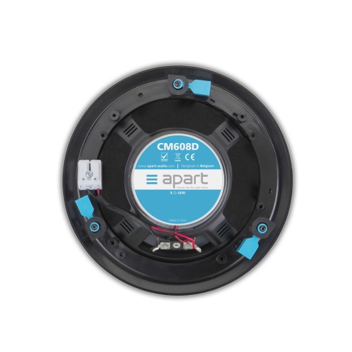 Dopełnieniem wysokiej jakości zestawu stanowią 6,5” białe dwudrożne okrągłe bezramkowe głośniki sufitowe o mocy 4x 60W firmy Apart Audio. Model CM608 dedykowany jest do instalacji niskoprądowych, używany ze standardowym wzmacniaczem Hi-Fi, zapewnia brzmienie klasy Pro Hi-Fi. Głośnik wzmocniony polipropylenową membraną nisko-średniotonowy 6.5" oraz kopułką wysokotonową 1". Znakomicie sprawdza się przy odtwarzaniu muzyki tła. Kosz głośnika został wykonany z wysokiej jakości tworzywa ABS, a woofer a polipropylenu, głośnik jest odporny na działanie wilgoci(na życzenie klienta istnieje możliwość rozbudowy systemu o dodatkowe głośniki).