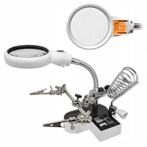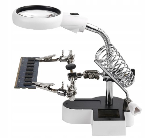TRZECIA RĘKA Z DWOMA LUPAMI, POWIĘKSZENIEM 12x ORAZ PODŚWIETLENIEM 2xLED