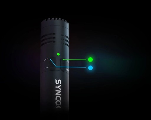 SYNCO M2S wyposażony jest w praktyczny wskaźnik LED, który ma na celu uproszczenie korzystania z mikrofonu wraz z aparatem. Gdy mikrofon jest włączony, wskaźnik LED zmienia kolor na zielony. Gdy dodatkowo wyłączony jest filtr górnoprzepustowy, świeci się kolor niebieski. Dzięki temu prostemu i funkcjonalnemu rozwiązaniu, łatwo możesz się skoncentrować na nagrywaniu nie martwiąc się o status pracy mikrofonu.