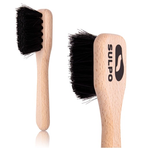 - Za pomocą miękkiej szczotki do butów, nanieś pastę równomiernie na całą powierzchnię buta.