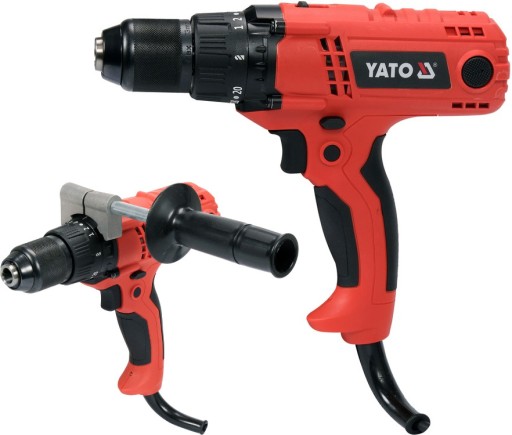 Wiertarko wkrętarka sieciowa do prac w drewnie i metalu z użyciem wierteł i wkrętów o dużych średnicach.