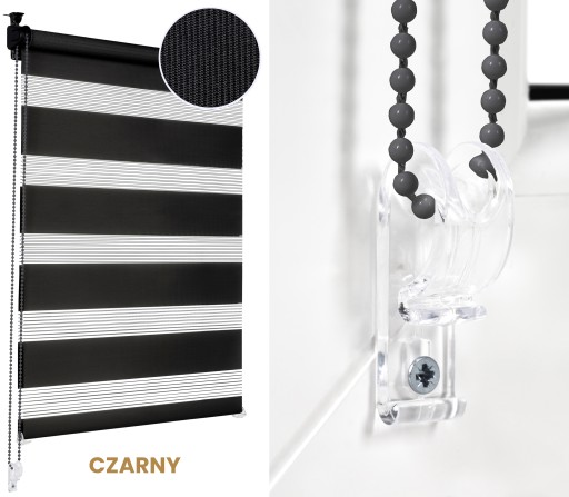 - Dwa przeciwległe pasy materiału, składające się z naprzemiennych warstw przezroczystych i nieprzezroczystych, pozwalają na precyzyjną regulację rolety pod kątem ilości wpadającego światła lub stopnia zaciemnienia.